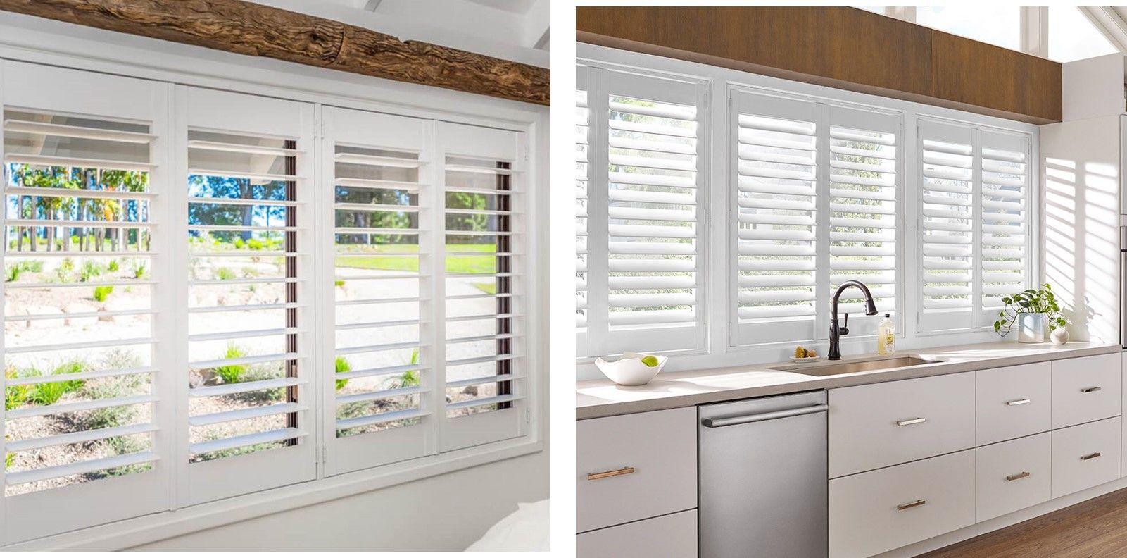 Plantation shutters are known for their wide, horizontal slats (or louvers) that can be tilted to control light and airflow. They're typically fitted inside the window frame and offer a clean, elegant look that complements both traditional and modern interiors. Their strong light and privacy control make them a popular choice for living rooms, bedrooms, and offices. Available in wood, faux wood, and composite materials.