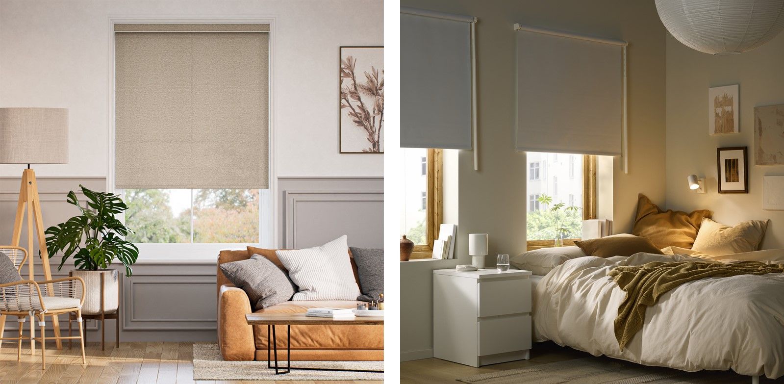Simple, sleek, and highly functional, roller shades roll up neatly into a tube at the top of the window. They come in a variety of fabrics, from sheer to blackout, and are great for achieving a clean, modern look. Easy to operate and perfect for minimalistic or contemporary interiors.